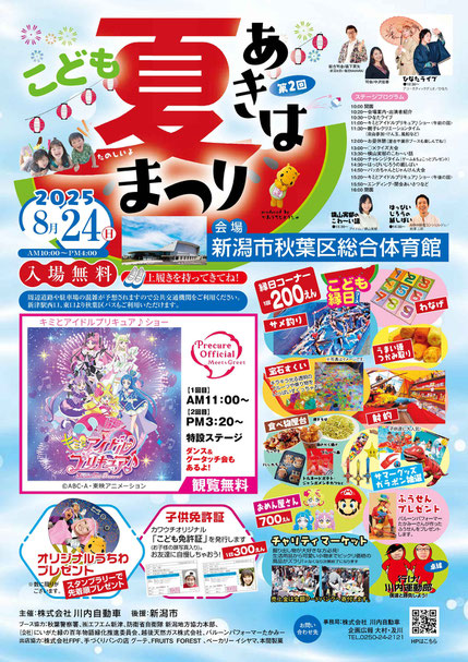 今年も開催決定!川内自動車主催の夏のビッグイベント ご家族みんなで楽しめる「あきはこども夏まつり2025」を、8月24日(日)に開催いたします! なんと今年は、このイベントが 🎗️**「あきはこども夏まつり」として新潟市より後援をいただきました!**...